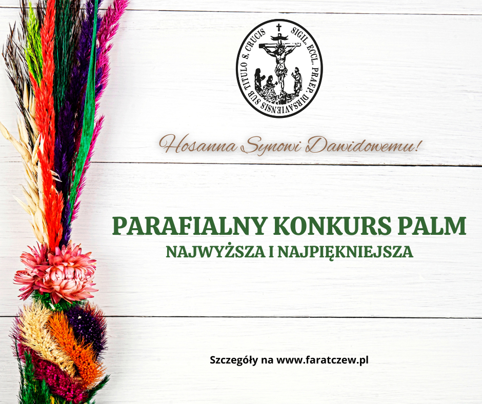 Wykonane i podpisane palmy przynosimy w Niedzielę Palmową (29 marca 2026) na mszę św. na godz. 11:00.