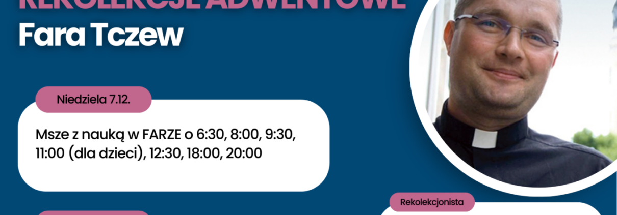 Parafia Podwyższenia Krzyża Świętego w Tczewie zaprasza na Rekolekcje Adwentowe, które odbędą się w dniach 7–9 grudnia 2025 roku. Tegoroczne nauki poprowadzi ks. dr Mariusz Dudka, Diecezjalny Duszpasterz Rodzin Diecezji Zielonogórsko-Gorzowskiej.
